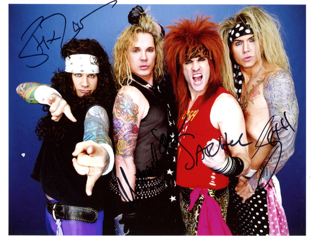 IP signed photograph, shows the rock band `Steel Panther` in a group picture, 8 x 11 inch, obtained In-Person, signed by the pictured band members in black felt tip, in very fine condition.
