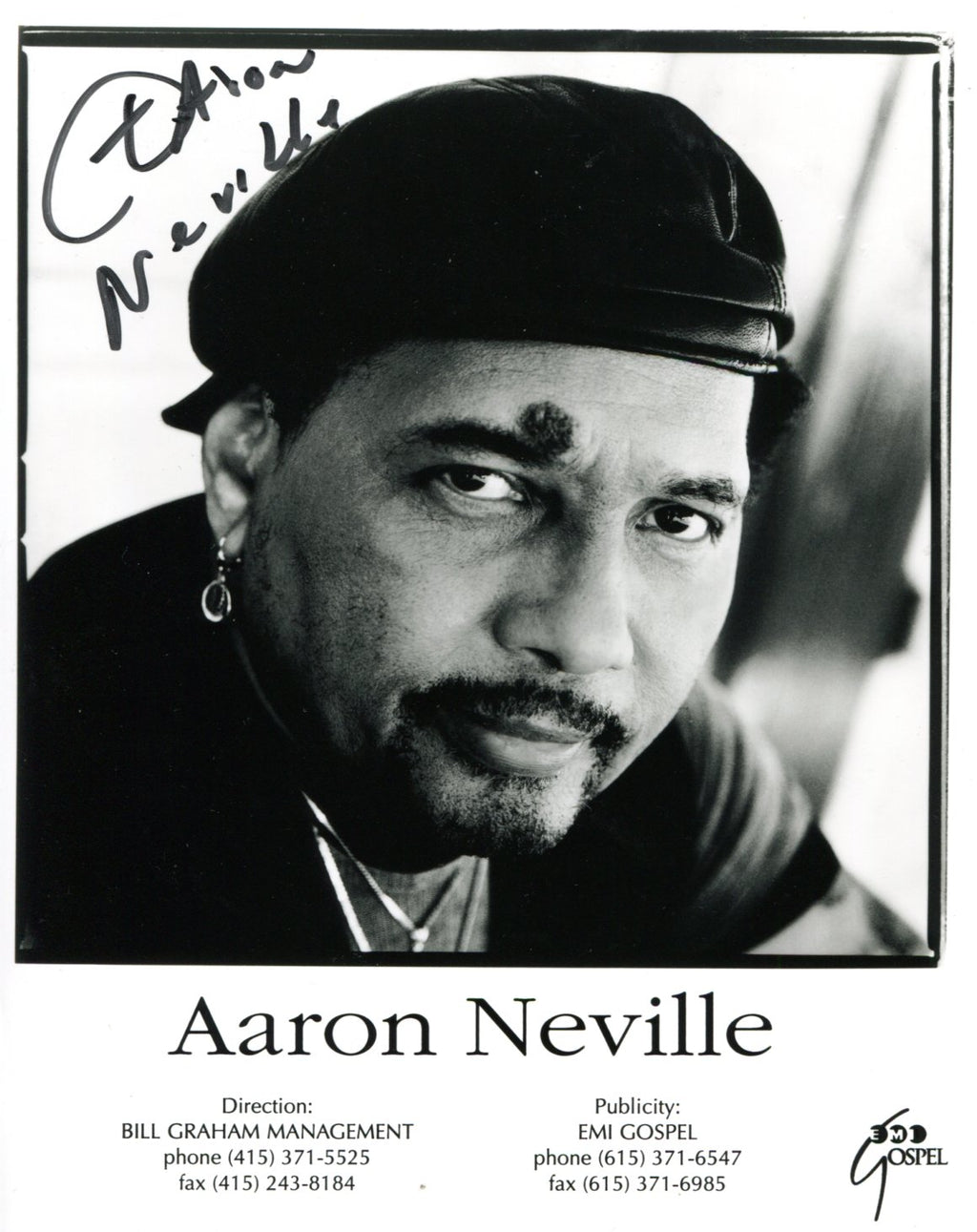 Signed photograph, shows Aaron Neville in a close-up portrait, 8 x 10 inch, signed in black felt tip "Aaron Neville", in very fine condition.