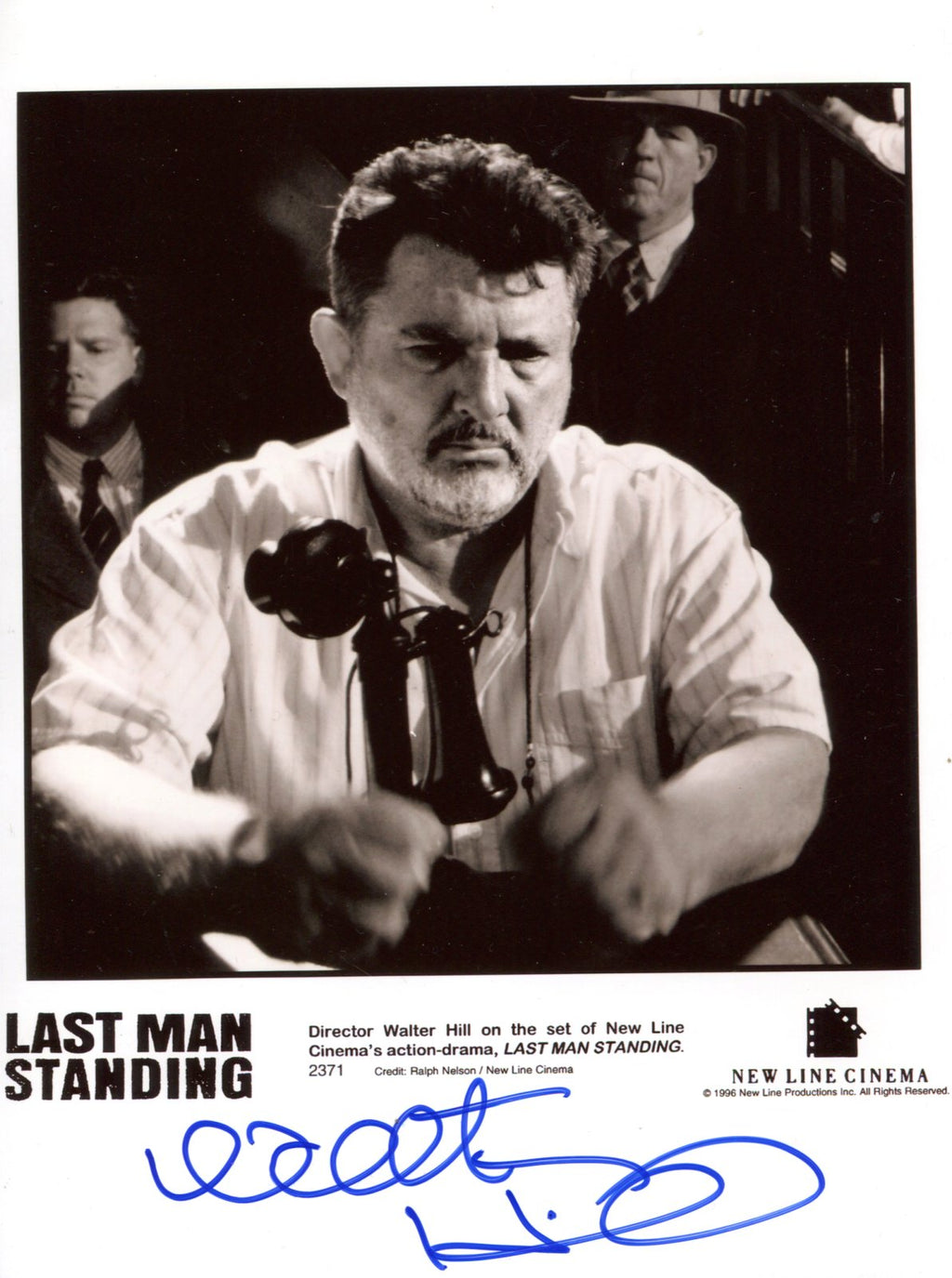 IP signed publicity photograph, shows Walter Hill in a film scene, 8 x 11 inch, signed in blue felt tip "Walter Hill", obtained In-Person, in very fine condition.