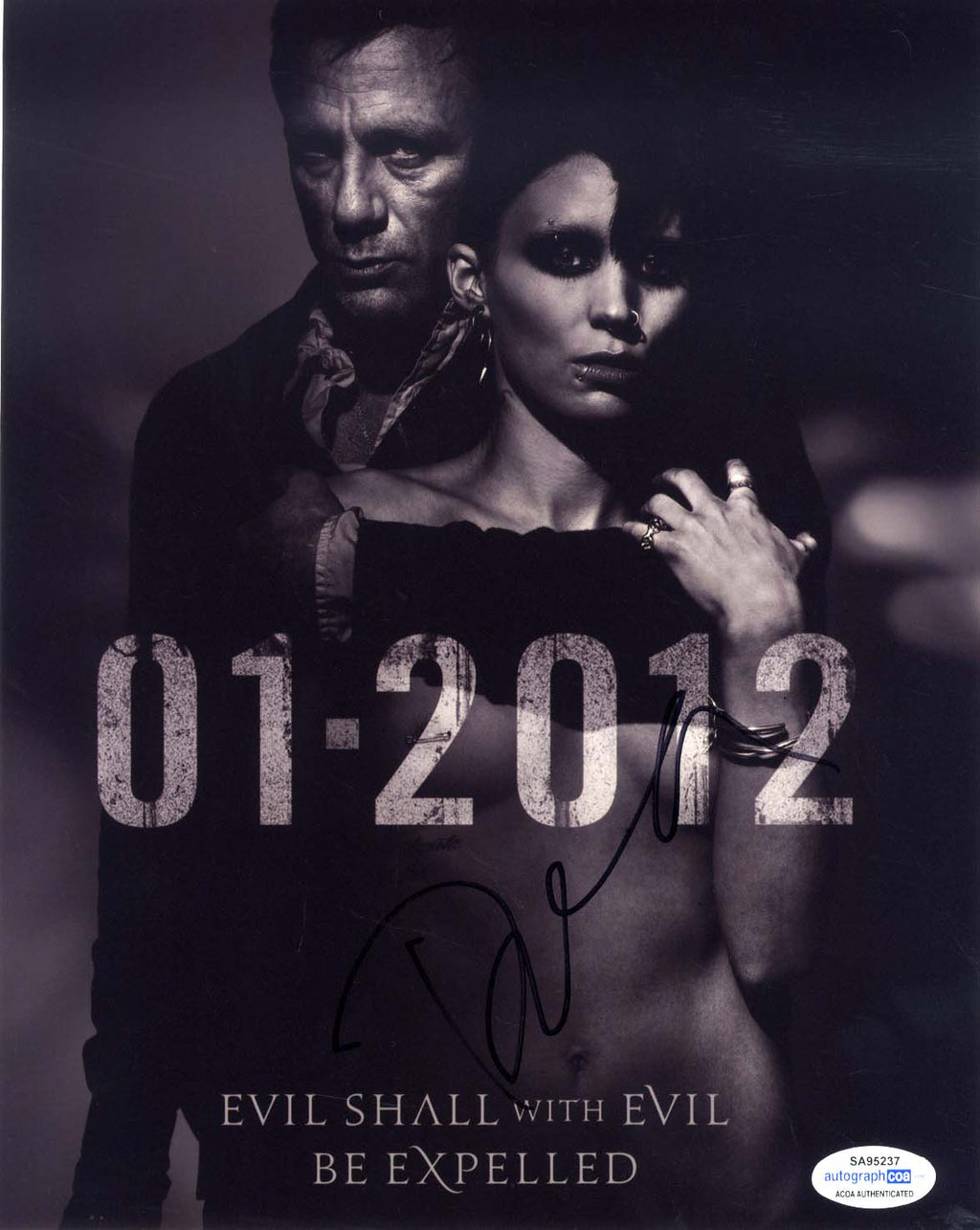 IP signed photograph, shows Daniel W. Craig in a promotion pose (next to Rooney Mara) for `The Girl with the Dragon Tattoo` (2011), 8 x 10 inch, signed in black felt tip, obtained In-Person, in very fine condition. Accompanied by an additional `AutographCOA` certificate of authenticity.