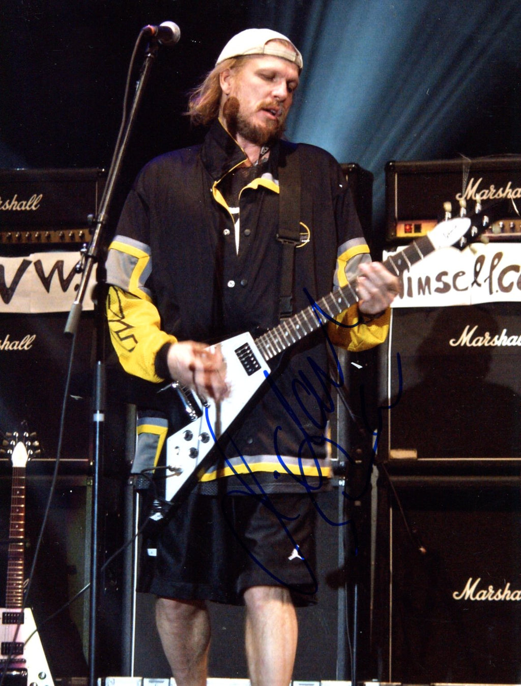IP signed photograph, shows Michael Schenker on stage, 8 x 11 inch, signed in blue felt tip "Michael Schenker", obtained In-Person, in very fine condition.