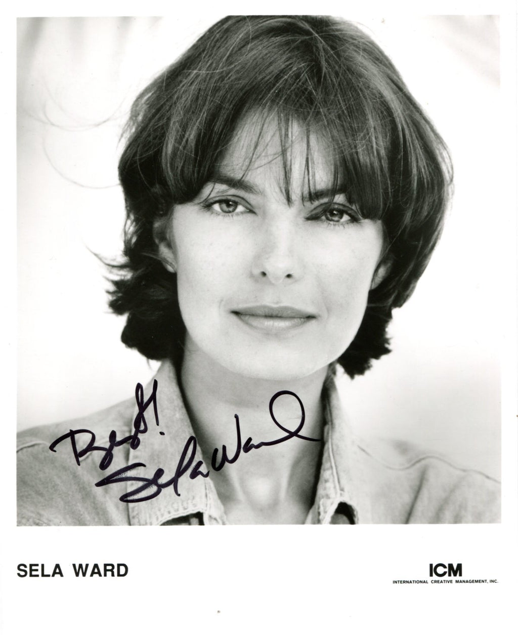 IP signed photograph, shows Sela Ward in a close-up portrait, 8 x 10 inch, signed and inscribed in black felt tip "Best! - Sela Ward", obtained In-Person, with some glue remnants to the verso - in nearly very fine condition.