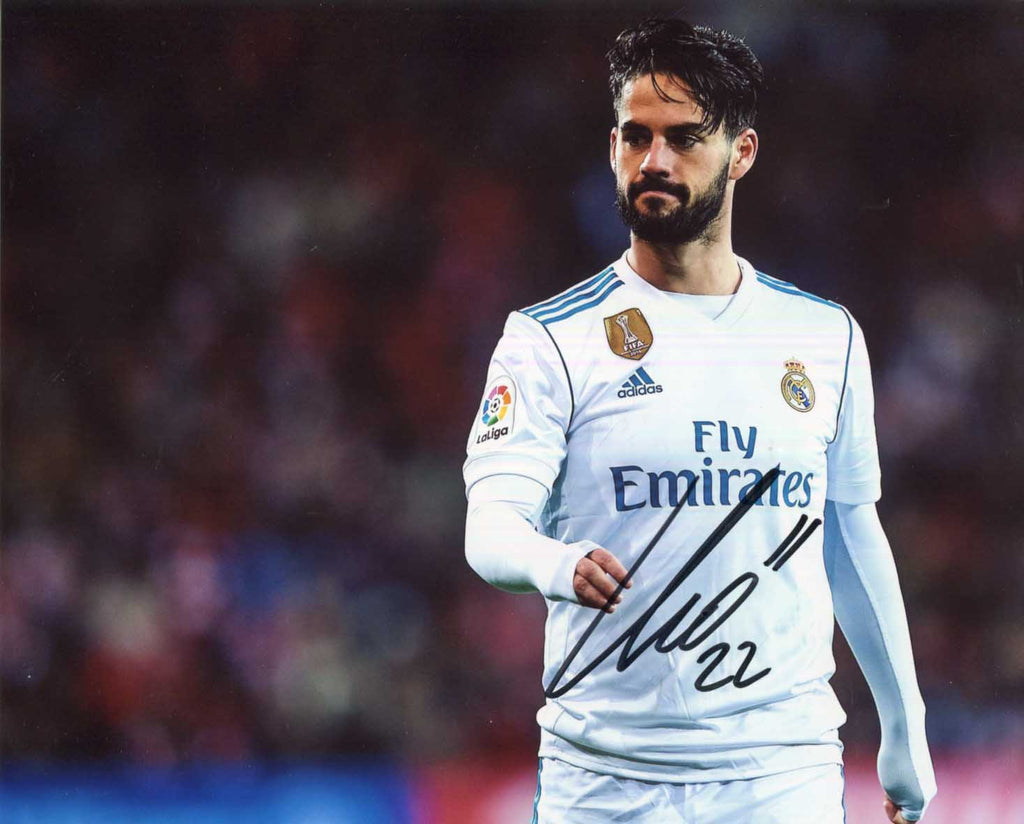 IP signed photograph, shows Isco (Francisco Román Alarcón Suárez) as footballer (Real Madrid), 10 x 8 inch, obtained In-Person in Berlin, signed in black felt tip, in very fine condition.