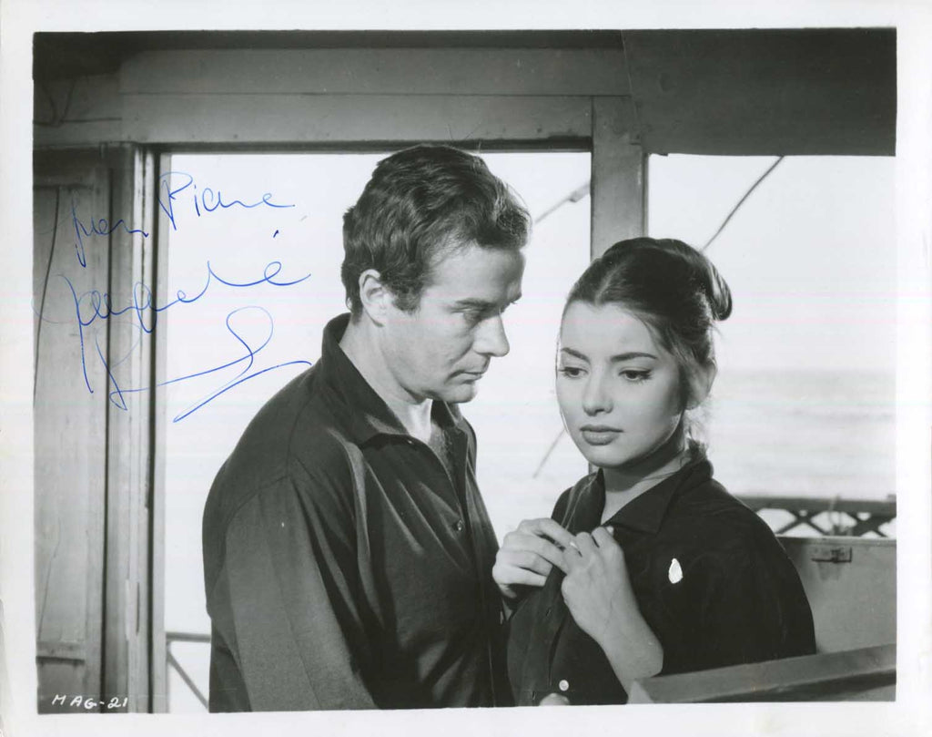 Signed glossy photograph, shows Jacqueline Sassard in a film scene, 10 x 8 inch, signed and inscribed in blue ink, in very fine condition.