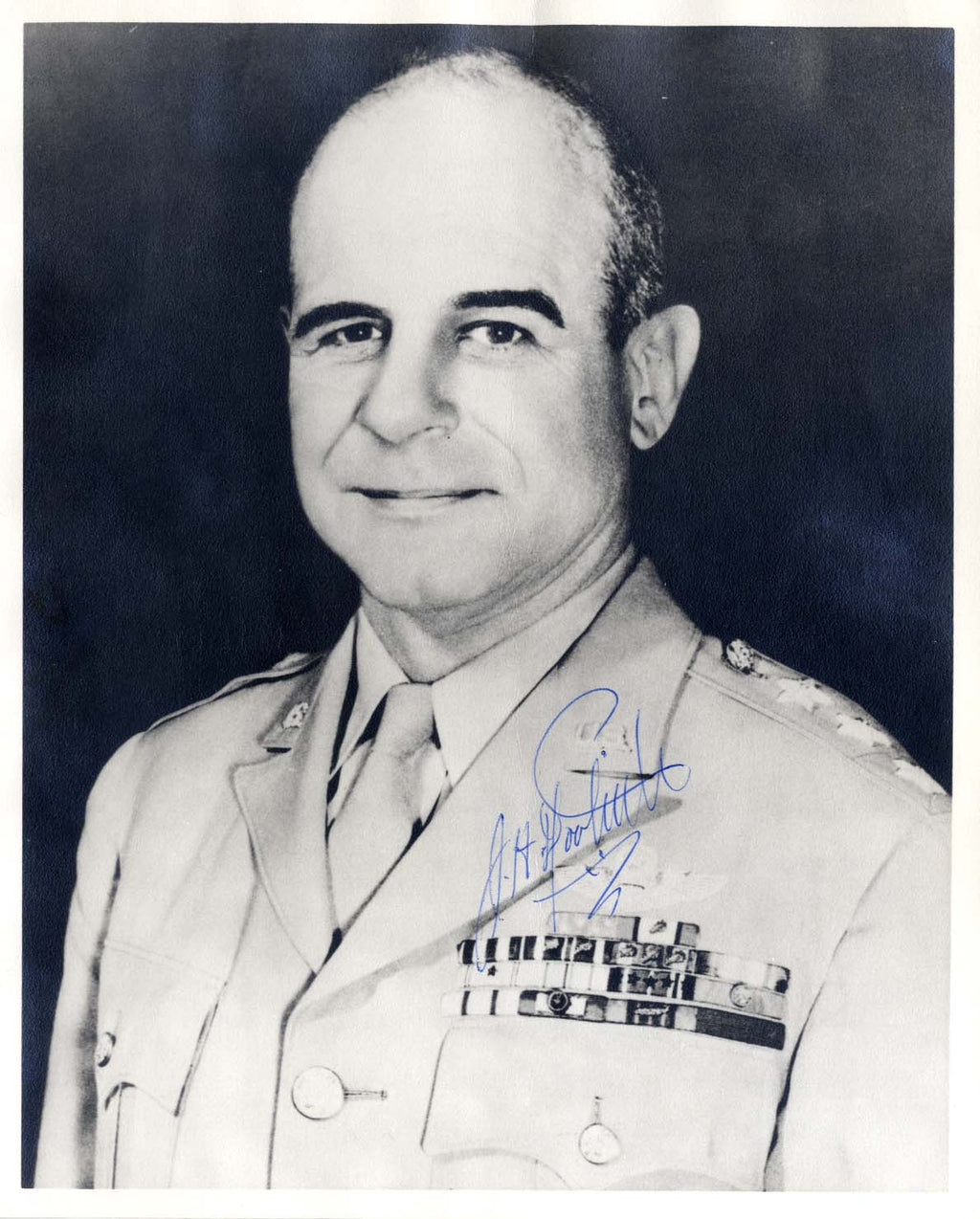Signed vintage matte-finish studio photograph (stamp verso), shows James H. `Jimmy` Doolittle in an official chest-up portrait in his Air Force uniform, 8 x 10 inch, signed blue ballpoint ink "J. H. Doolittle", with some silvering, one mild vertical crease, and slightly waved to the edges - in fine condition. Accompanied by a photograph signed by Norman Schwarzkopf Jr. (1934-2012), 8 x 10 inch, signed in golden ink, in very fine condition & a mounted photograph signed by Alfred Mason Gray Jr. (1928-2024), 11 x 14 inch, signed and inscribed on the mount in black felt tip, with mild signs of wear - in fine to very fine condition.