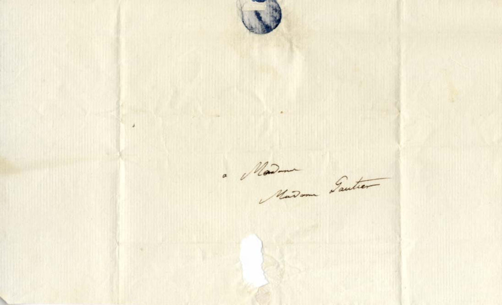 Autograph letter signed, one page - also addressed to the reverse of the conjoined sheet, 4,5 x 6,5 inch, [probably Paris, "ce mardi"], in French, to Marguerite Madeleine Gautier (1767-1838, daughter of Etienne Gabriel Delessert and sister of Benjamin Delesser) - concerning an invitation, Joseph Louis Gay-Lussac*, and the prophecy of a psalm**, written and signed in dark ink "Humboldt", attractively mounted (removable) for fine display with a picture of Alexander von Humboldt (altogether 11,75 x 8,25 inch), with letter folds, and a small tear due to broken seal - in fine condition.