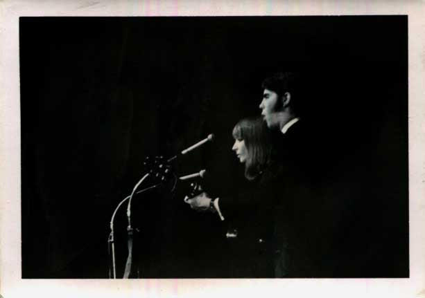 Vintage candid photograph signed verso, shows Esther and Abi Ofarim on stage (on the front), 4 x 3 inch, signed by both verso in blue felt tip "Esther Ofarim" & "Abi Ofarim", with very mild signs of wear - in nearly very fine condition.