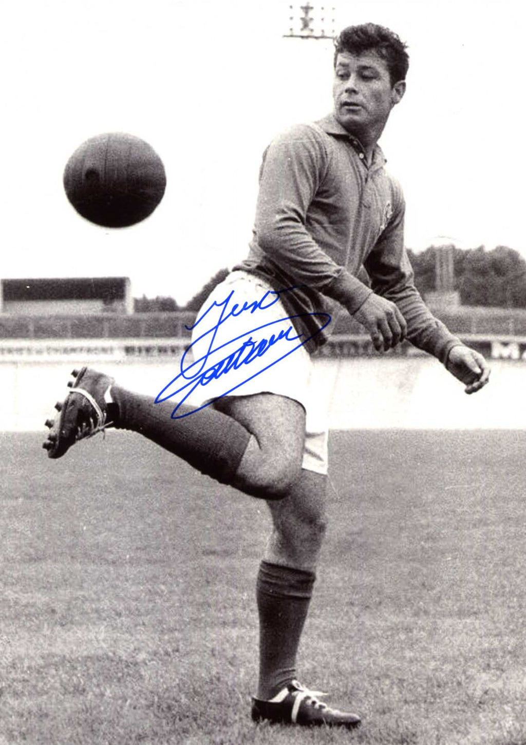 IP signed photograph, shows Just Fontaine as footballer (French National Team), 8 x 11 inch, obtained In-Person in Toulouse (March 2014), signed in blue felt tip, in very fine condition.