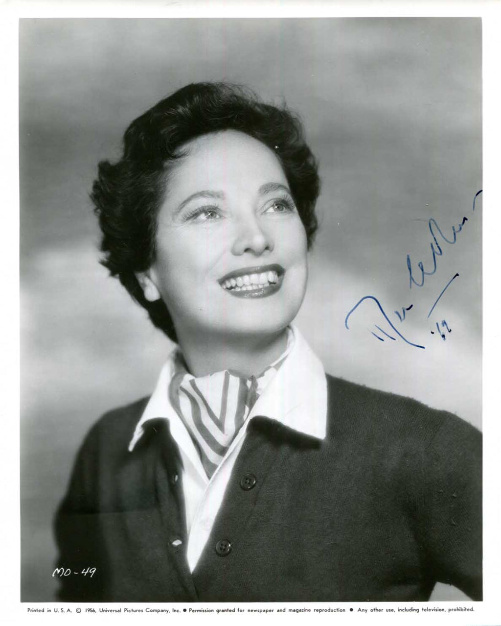 Signed vintage glossy photograph, shows Merle Oberon in a beautiful head and shoulders pose, 8 x 10 inch, signed and dated in blue ink "Merle Oberon - `62", with scattered mild signs of age wear - in fine to very fine condition.