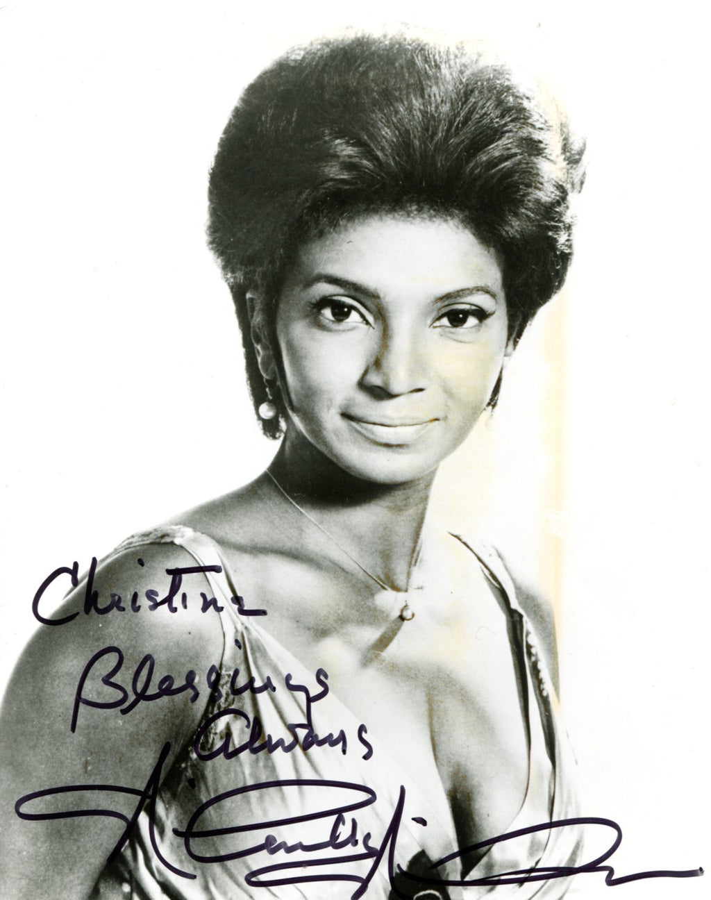 Signed photograph, shows Nichelle Nichols in a chest-up portrait, 8 x 10 inch, signed and inscribed in black felt tip "Christine - Blessings - Always - Nichelle Nichols", in very fine condition.