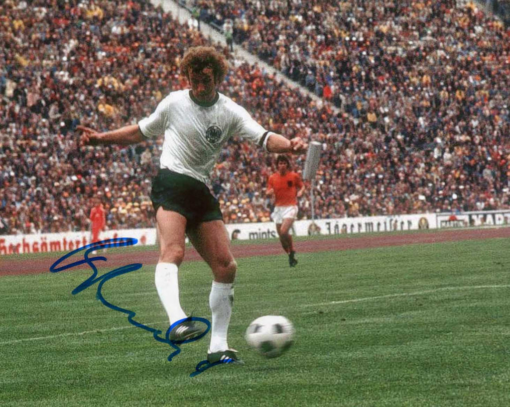 IP signed photograph, shows Rainer Bonhof as footballer (German National Team, 1974), 10 x 8 inch, obtained In-Person in Berlin, signed in blue felt tip, in very fine condition.
