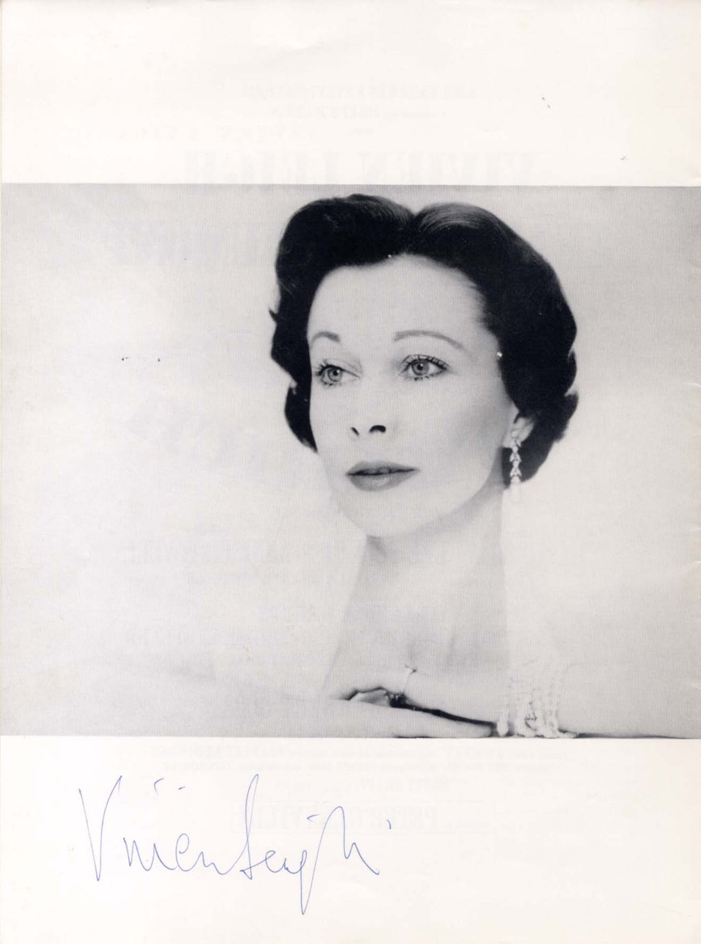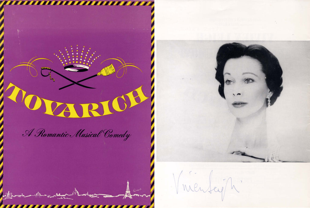 Signed souvenir programme for the musical comedy `Tovarich`*, in English, 9 x 12 inch, signed on an internal page (below her photograph) in blue ballpoint ink "Vivien Leigh", with mild signs of age wear (especially on the cover) - in fine condition.