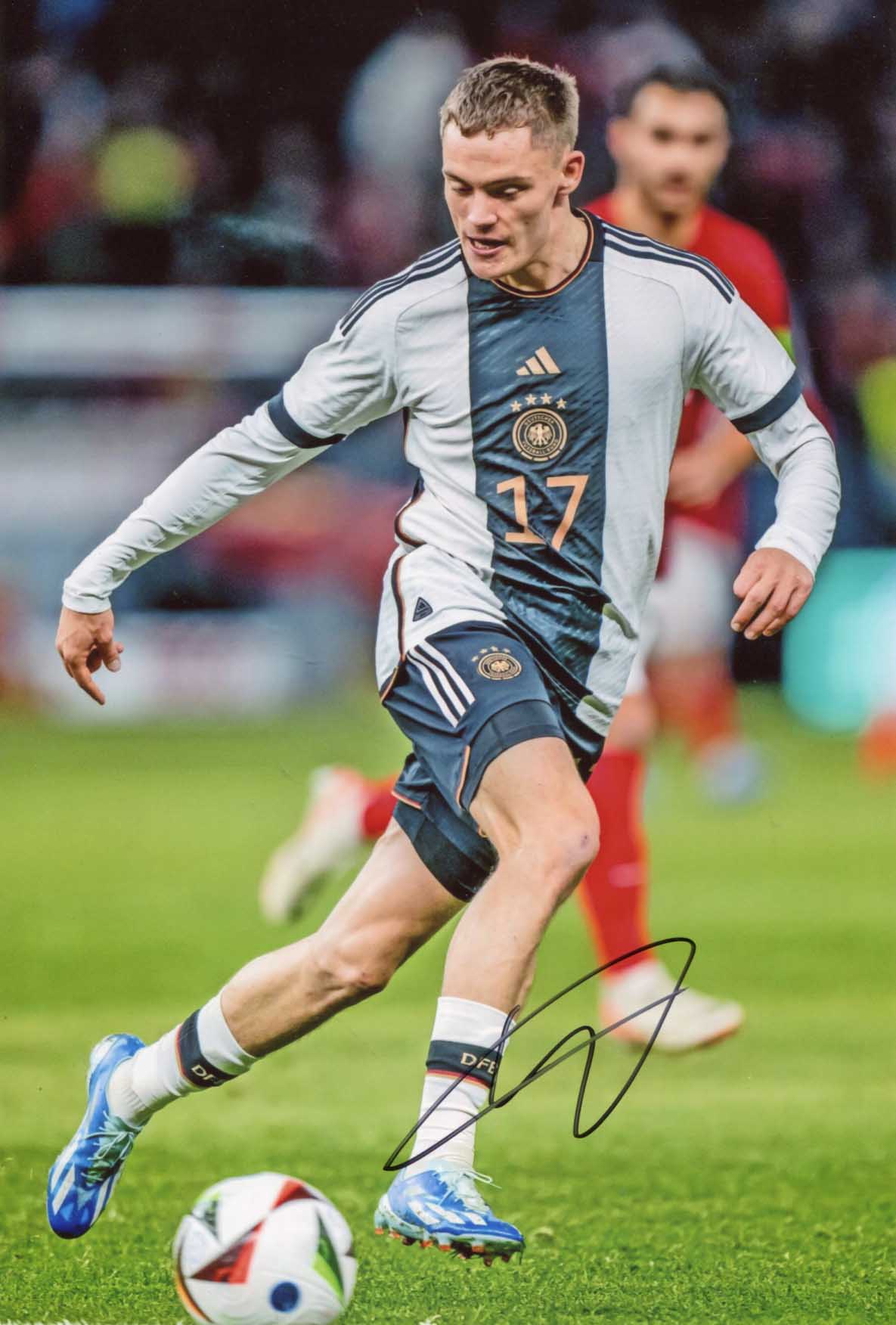 IP signed photograph, shows Florian Wirtz as footballer (German National Team), 8 x 12 inch, obtained In-Person (6.02.2024), signed in black felt tip, in very fine condition.