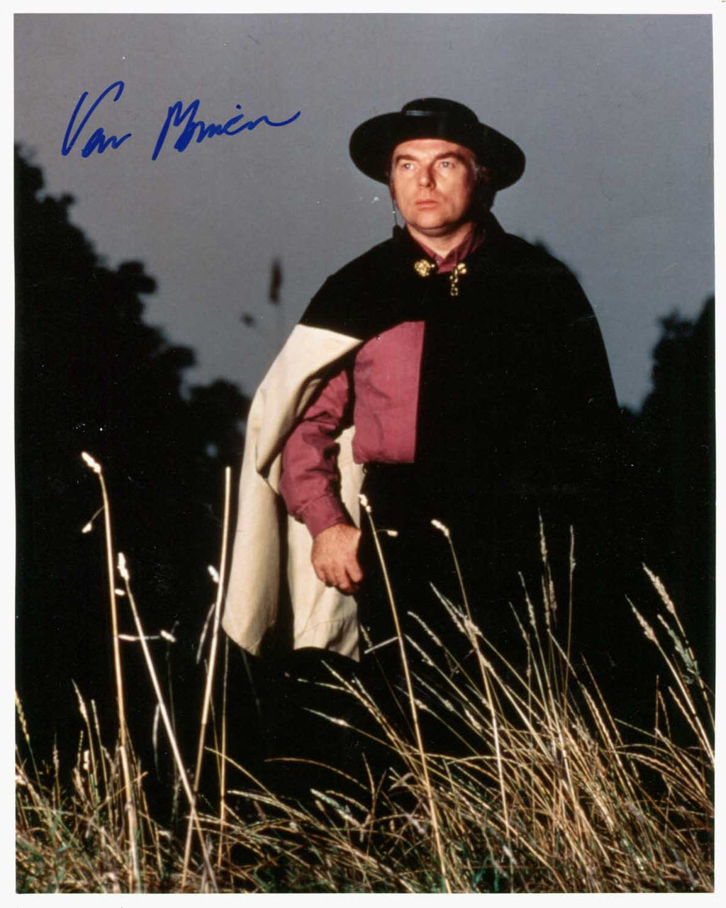 Signed photograph, shows Van Morrison in a full length pose (outdoors), 8 x 10 inch, signed in blue felt tip, in very fine condition.