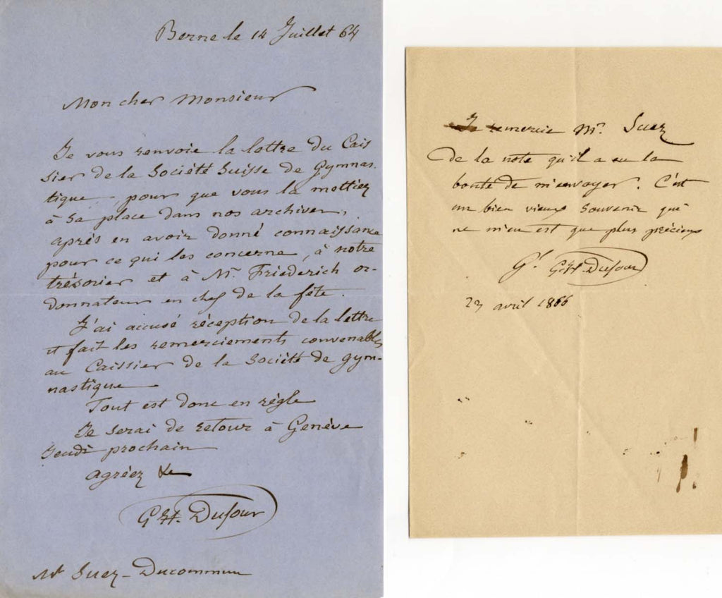 Collection of 23 autograph letters signed, in various formats, 1860-1871, in French, this interesting collection begins with a letter dated March 9, 1860, in which Dufour inquires about the future of the Canton of Geneva and the likely outcome concerning Geneva and the Swiss Confederation, highlighting the "major differences leading to irritating debates" (translated) - most of the letters deal with the work of the Committee for the erection of a commemorative monument to celebrate the union of the Canton of Geneva with Switzerland in 1863 (in addition to these various exchanges, there is a letter addressed to Councilor Sarasin indicating the need to postpone the implementation of cartographic measures), all written and signed (in his capacity as President of the implementing committee) in dark ink "G. H. Dufour", mostly with letter folds and a few with mild signs of wear - overall in fine to very fine condition.
