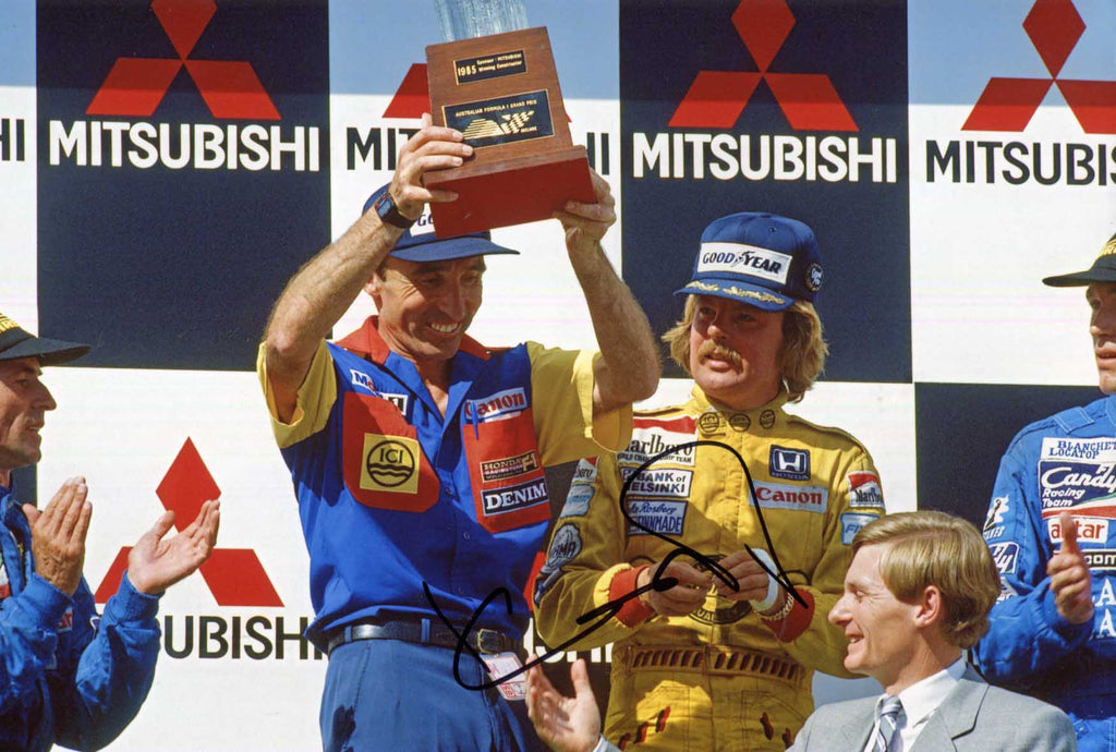 IP signed photograph, shows Keke Rosberg at an award ceremony, 12 x 8 inch, obtained In-Person, signed in black felt tip, in very fine condition.