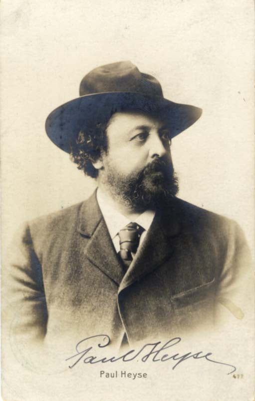 Signed vintage postcard photograph, shows Paul Heyse in a chest-up pose, 3,5 x 5,5 inch, signed in blue ink "Paul Heyse", with browning and mild signs of age wear - in fine condition.