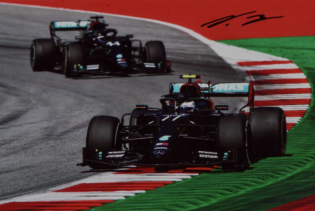IP signed photograph, shows Valtteri Bottas in a racing scene (Mercedes), 12 x 8 inch, obtained In-Person, signed in black felt tip, in very fine condition.