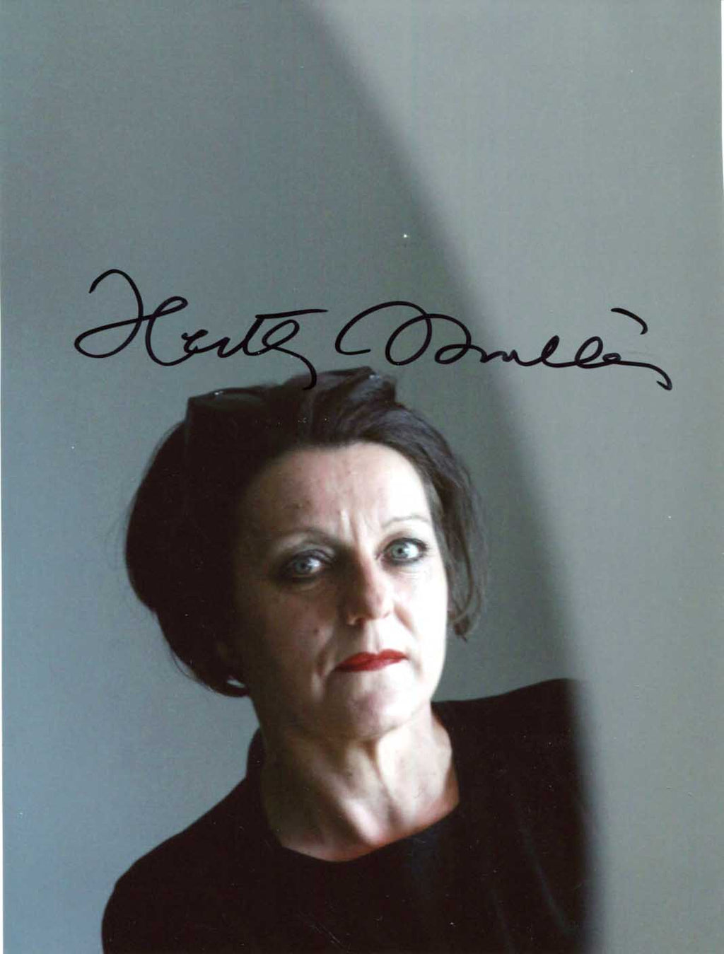 Signed photograph, shows Herta Müller in a head and shoulders portrait, 7 x 9,5 inch, signed in black felt tip "Herta Müller", with slightly trimmed edges - in fine to very fine condition.