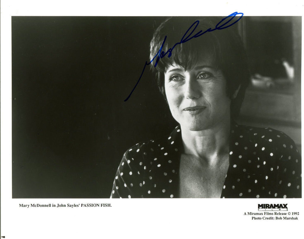 IP signed photograph, shows Mary McDonnell in a film scene in "Passion Fish" (1992), 10 x 8 inch, signed in blue felt tip "Mary McDonnell", obtained In-Person, in very fine condition.