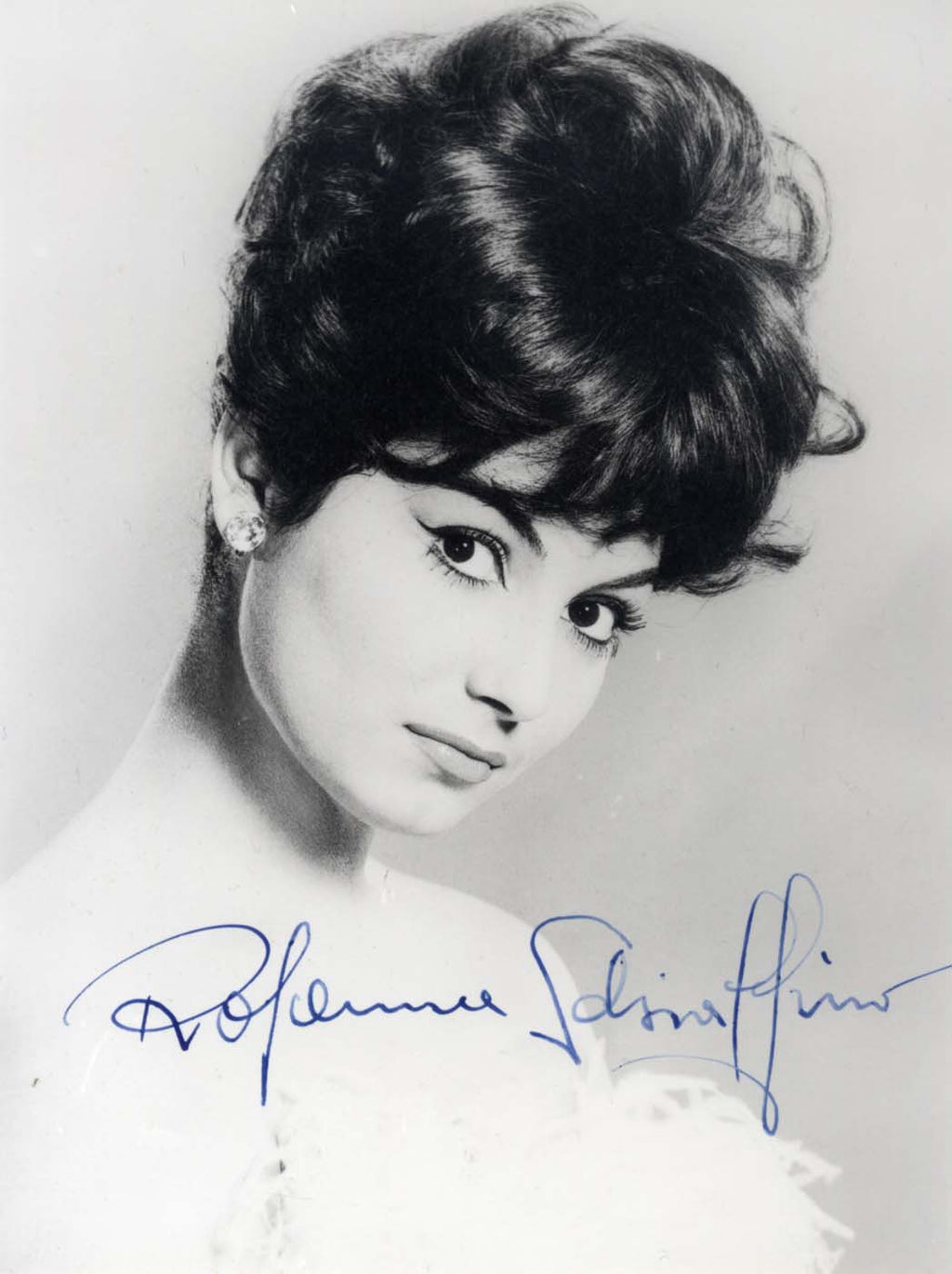 Signed vintage semi-glossy photograph, shows Rosanna Schiaffino in a beautiful close-up portrait, 7 x 9,25 inch, signed in blue ink "Rosanna Schiaffino", with slightly trimmed edges - in fine to very fine condition.
